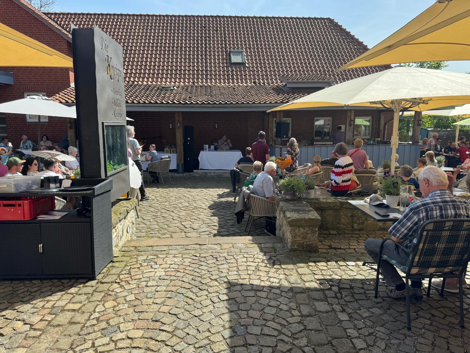 Unser hochwertiger Biergarten bietet die ideale Kulisse für dieses besondere Erlebnis. Umgeben von malerischer Landschaft, den historischen Gutshof-Ensemble und vielen gemütlichen Sitzbereichen entsteht eine Atmosphäre, in der man sich sofort wohlfühlt. Sie können schon ab 13.00 Uhr ankommen, essen und trinken oder auch während der Spielrunden unsere Gastronomie am Platz genießen. Die entspannte Stimmung und das besondere Ambiente laden zum Verweilen ein.